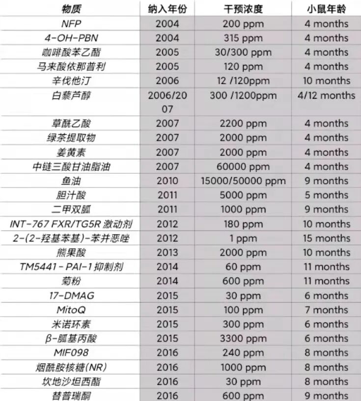 干预计划虽说已进入第19个年头,然而,真正通过独立验证、被官方盖章“显著延长模型小鼠寿命”的物质却并不是很多。