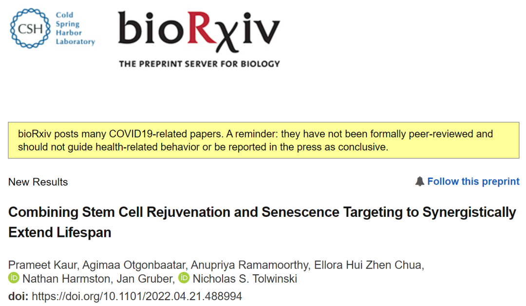得益于领域内学者们的潜心探索,表观遗传重编程、衰老细胞清除,这些曾以为天方夜谭般的故事正逐渐成真。上月22日,来自耶鲁-新加坡国立大学学院的科研人员们宣布,瞬时细胞重编程或衰老细胞清除延长了果蝇寿命,并且联用两者效果更好,最长可延寿31.6%[1]。