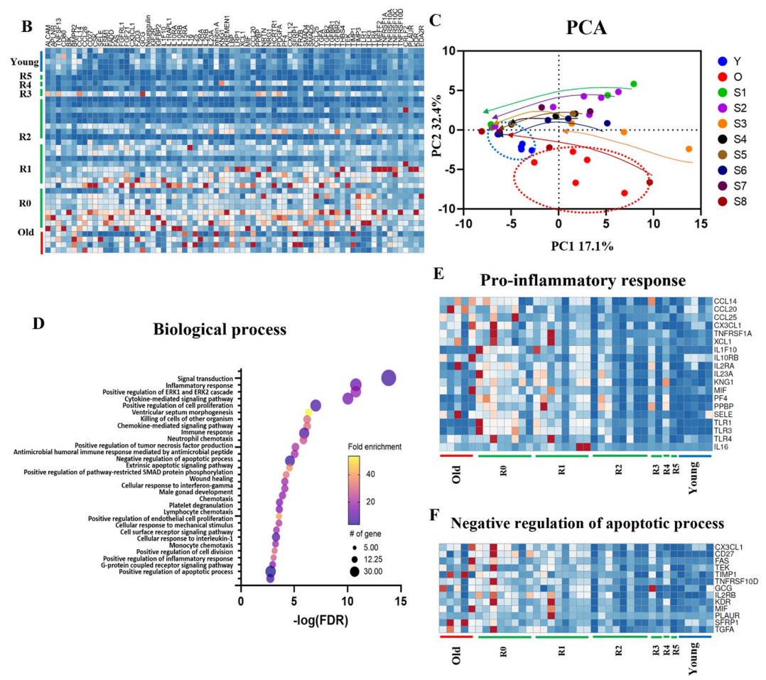 例如,在开展TPE治疗前,Conboy教授团队分别分析了两组人群的507种蛋白质,发现由于衰老,人体内有近15%的蛋白质会发生显著变化,其中,占比最大的是与信号转导、炎症反应,以及调控细胞凋亡密切相关的蛋白质。