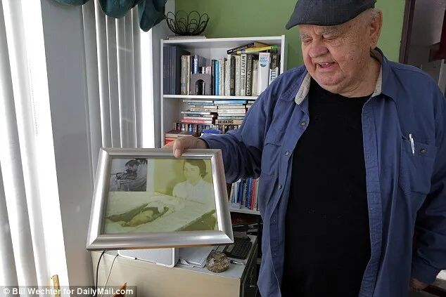 图注:纳尔逊展示客户Mildred Harris的追悼会照片