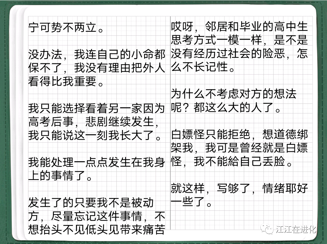 她经历的,我有过之无不及,因为我即使自己的爸又是自己的妈,我早就和父母隔阂了。