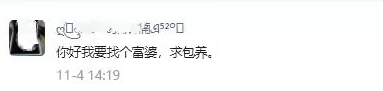 吓得我Ju花一紧,花容失色,我啥时成富婆了我咋不知道呢?真不知道这些人是怎么想的,这样漫天撒网就能找着富婆?得亏我是个穷女人。