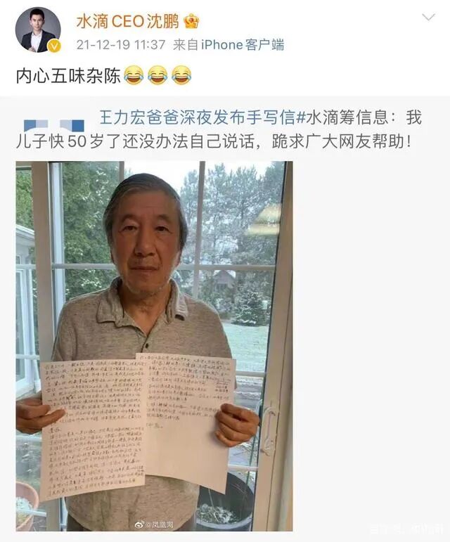 王父爱儿心切的出镜被网友调侃,有网友配文称,“水滴筹信息:我儿子快50岁了还没办法自己说话,跪求广大网友帮助!”