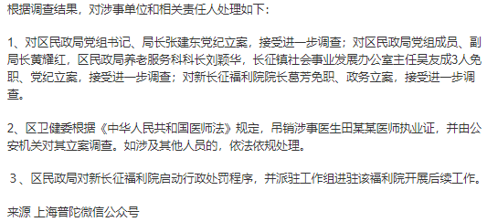 这件严重的事情,当然得调查,到底是什么情况?上海普陀区很快公布了调查结果: