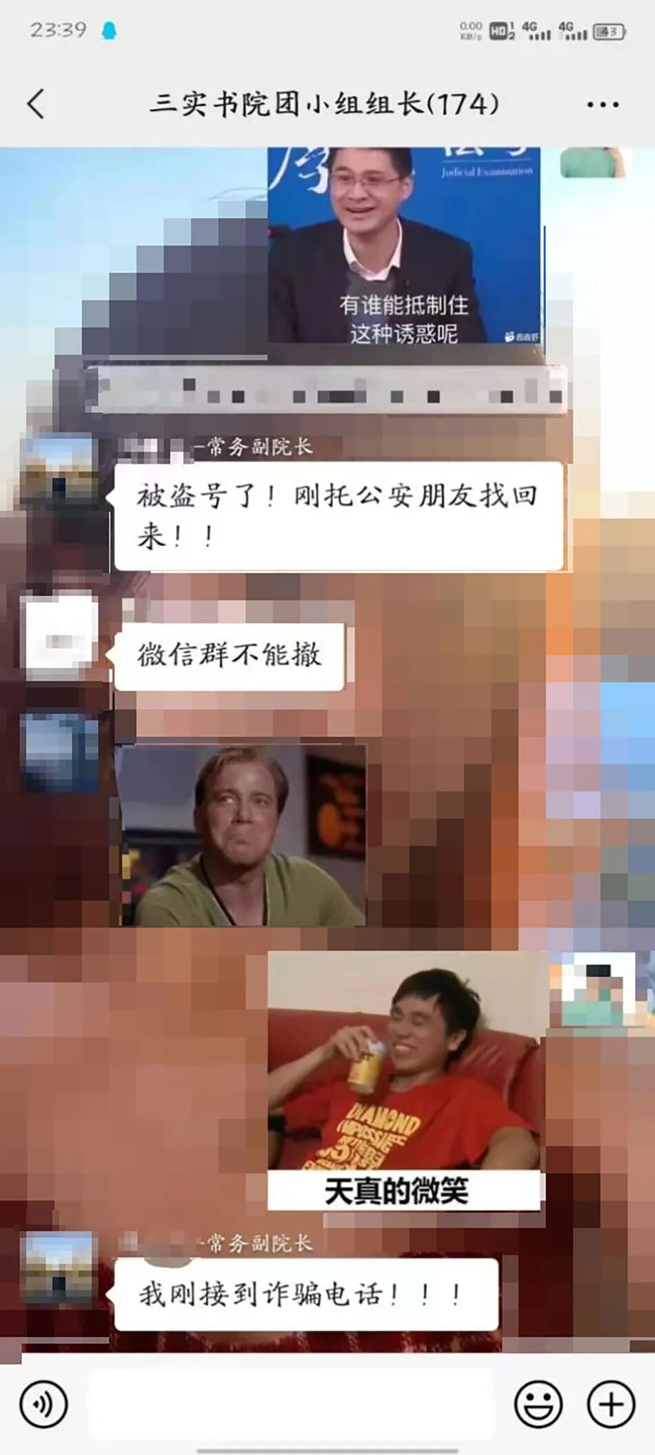 几分钟后,他发现发错了群,但已超过了可撤回时间,怎么办?于是赶紧声明微信号被盗,已托公安朋友找回来——意思是这个话不是我说的,是坏人害我名声在群里胡说八道,你们千万别信。