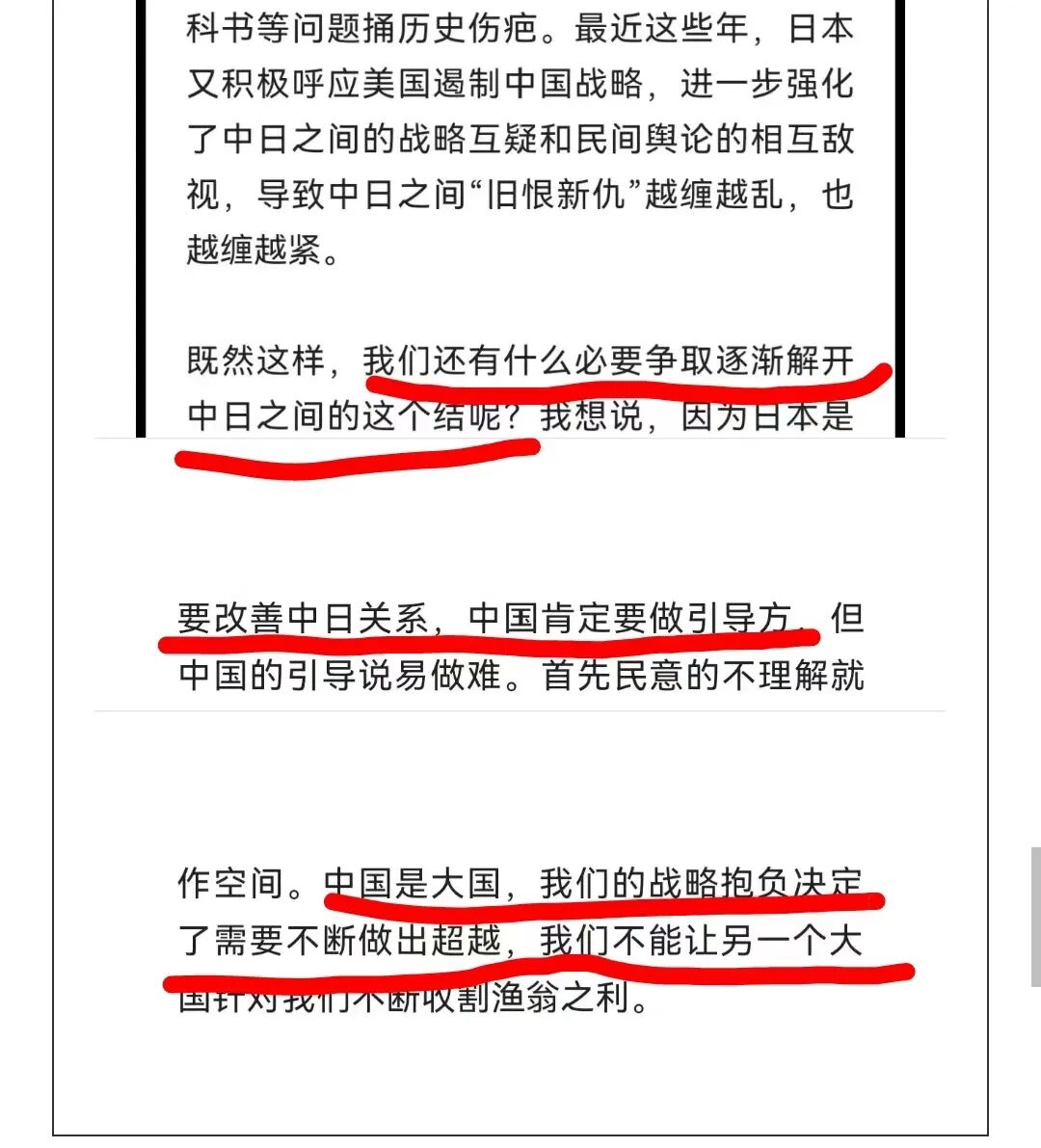 认可日本人对中国造成的巨大伤害,认可日本总是充当美国的帮凶坑害中国,认可日本人不服中国不断崛起的现实,认可日本的民意对中国人的负面看法高达91%。
