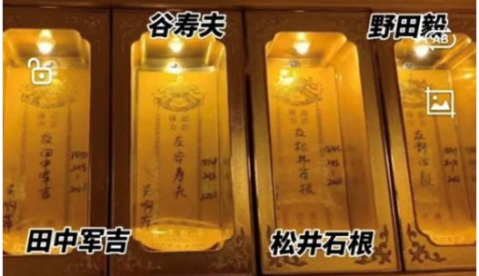 被供奉的是南京大屠杀的主犯田中军吉、南京大屠杀的主要负责人之一的甲级战犯松井石根、乙级战犯谷寿夫,以及在南京制造了杀人比赛的丙级战犯野田毅等4战犯的牌位。