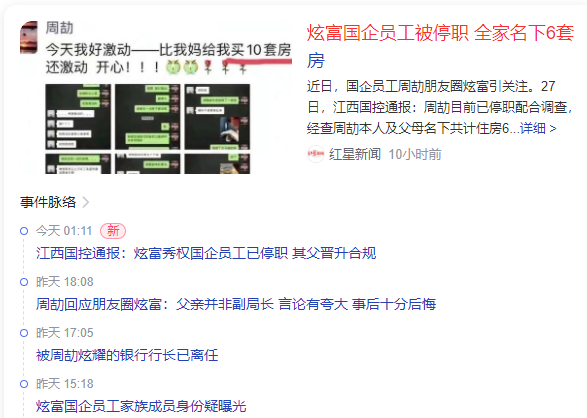 前些天辽宁沈阳实力坑爹的王澄澄刚刚因为炫父被骂惨,江西的周劼又因为在朋友圈炫父炫权炫富上了热搜,引人侧目。