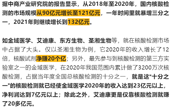君不见,百业萧条之下,核酸检测却已成当下最暴利的行业。