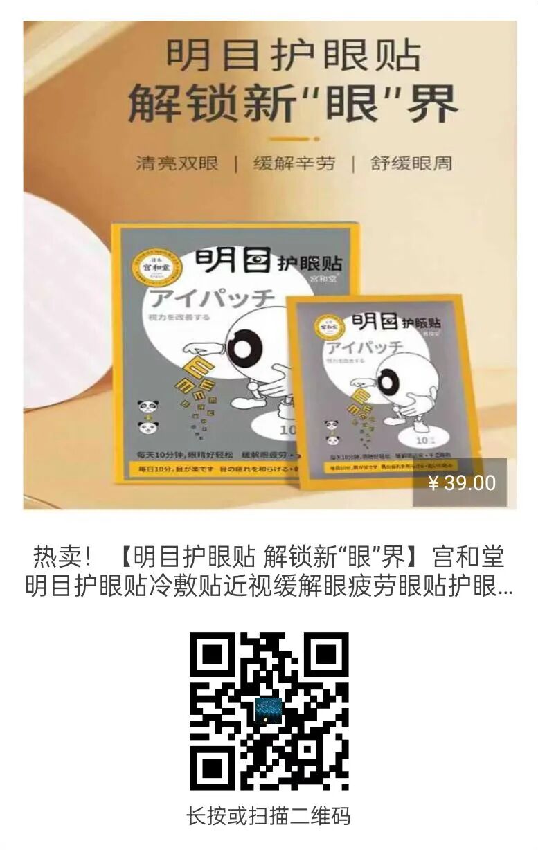 很多人选择买眼药水用,市面上的眼药水超九成都添加了防腐剂,长期使用可能会损害到眼角膜。给大家推荐一款必备护眼法宝产品:宫和堂明目护眼贴。
