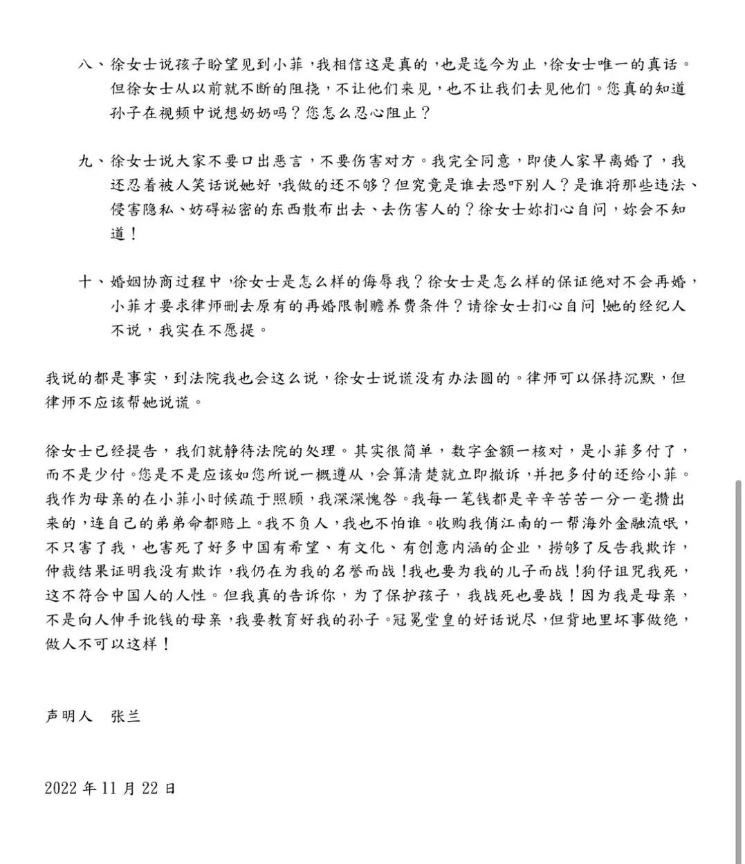 在大S云淡风轻回应汪小菲之后,张兰也做出了新的回呛,给大S明确列出十宗罪:(点击图片可放大字体)