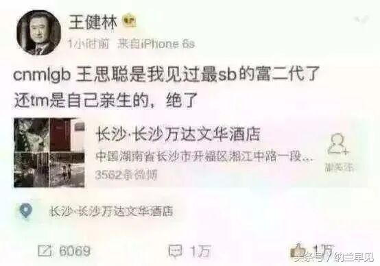 早在几年前王健林就公开说自己不会留一分钱给王思聪,他没想过把家族事业的接力棒交给儿子,出席各种会议也从不带着王思聪参加,他甚至还因为王思聪在社交媒体上胡言乱语充当娱乐圈纪检委惹怒了自己而在微博上公开骂儿子:这是我见过最SB的富二代了,还tm是自己亲生的,绝了。