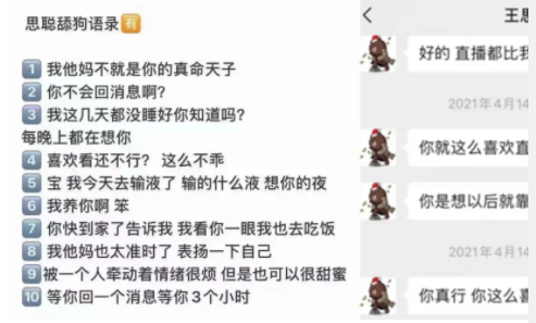 女网红见他要曝料,干脆先下手为强,直接放出了老王(奔四的中年男人叫小王似乎不太合适了)跟她的聊天截图,结果老王的舔狗形象轰然出圈,曾经的霸道总裁人设一下就碎裂了。