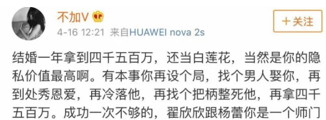 杨蕾在跟前夫离婚之后竟然还能打官司拿到巨额补偿,也让她成为了当时的热搜人物,很多女人对她的雷霆手段佩服有加,更多的女人则连连惊呼: