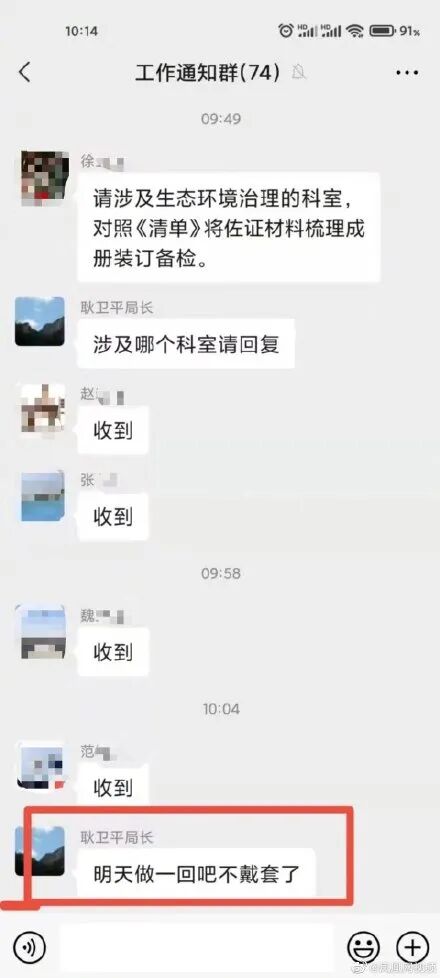 这个事儿在网络上曝光后,惊动了群里的74个人,惊动了群外的同僚们,惊动了网上的吃瓜群众,惊动了各路新闻媒体,惊动了任泽区信访办(信访办很快接到关于耿局长某方面的情况反映),还惊动了邢台市委书记,面对记者们的穷追猛打,邢台市委书记以短信回复记者说: