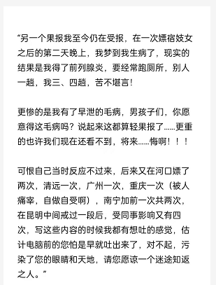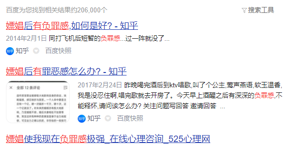 你在网络上随手一搜,就能搜出206,000个相关问题来,很多嫖过的男人都是类似的心理,痛苦,迷茫,后悔,负罪感: