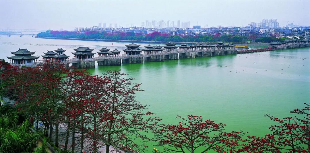 横跨韩江的湘子桥集梁桥、拱桥、浮桥于一体