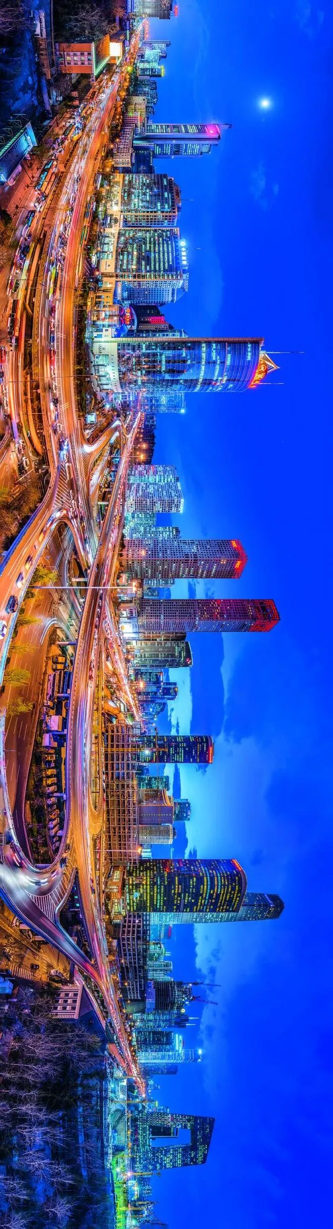 ◎ 夜幕来临时的国贸商务区。在夜晚光线较弱的环境下进行长时间曝光的俯瞰拍摄,是目前无人机拍摄难以解决的难题。拍摄这样的照片,只有爬上高楼。(摄影/赵良鹏,图自《中国国家地理》2015年8月)