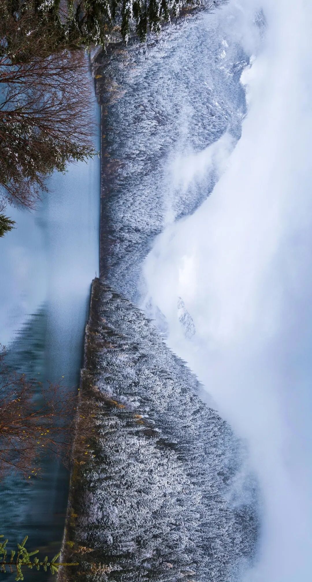 时不时会看见残雪挂在枝头