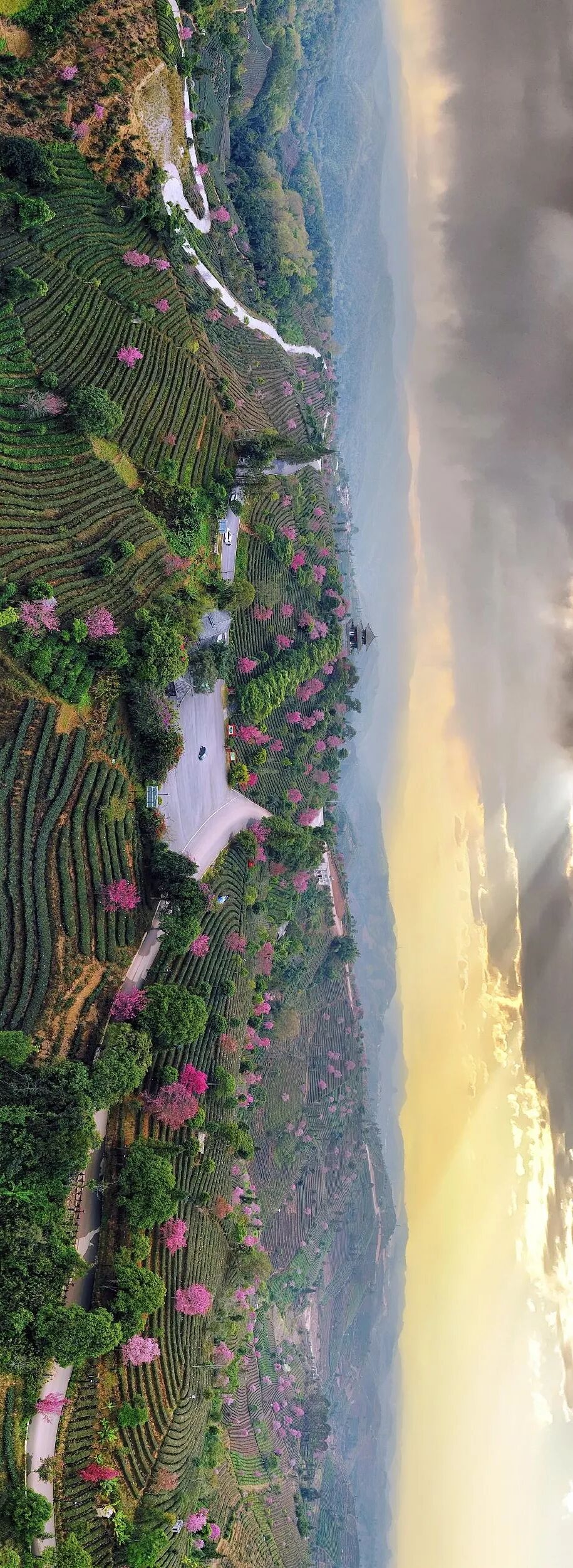 水旱从人,从高处俯瞰,薄雾似轻纱