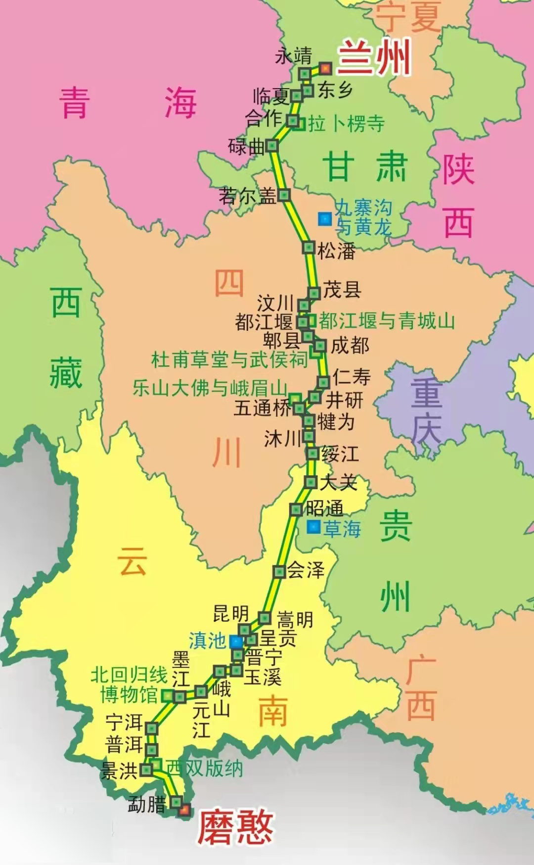 经过甘肃、四川、贵州和云南四省