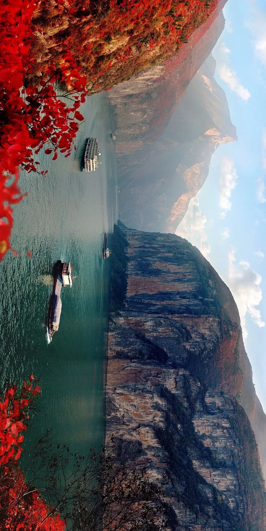 沿途两岸奇峰陡立、峭壁对峙