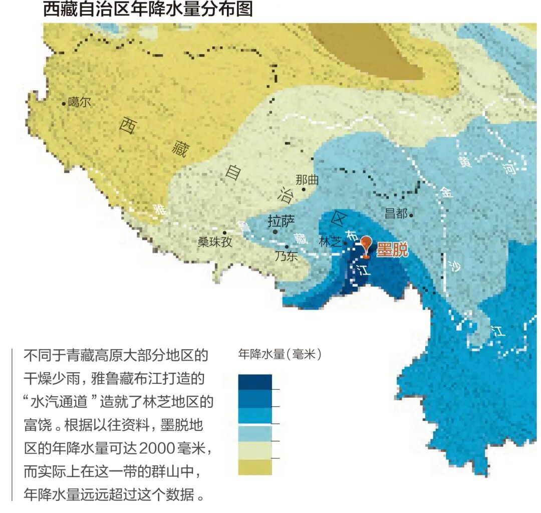 雅鲁藏布江河谷北上,带给墨脱不尽的雨水