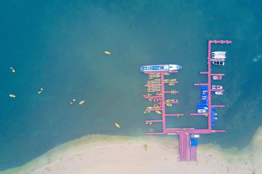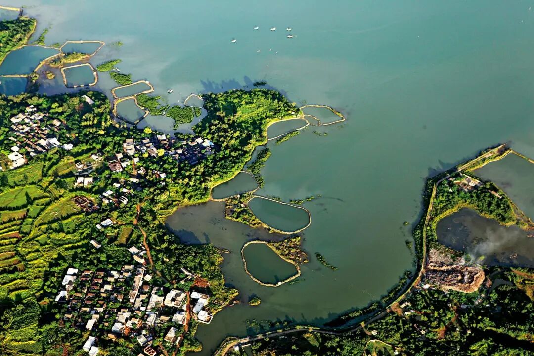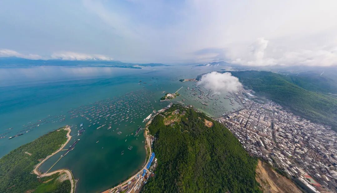 阳江市海陵岛,曾被《中国国家地理》杂志评为“中国十大最美海岛”之一,素有“南海鱼仓”的美称。岛内大角湾因似巨大的牛角而得名,养殖水产的网箱铺满了海面。