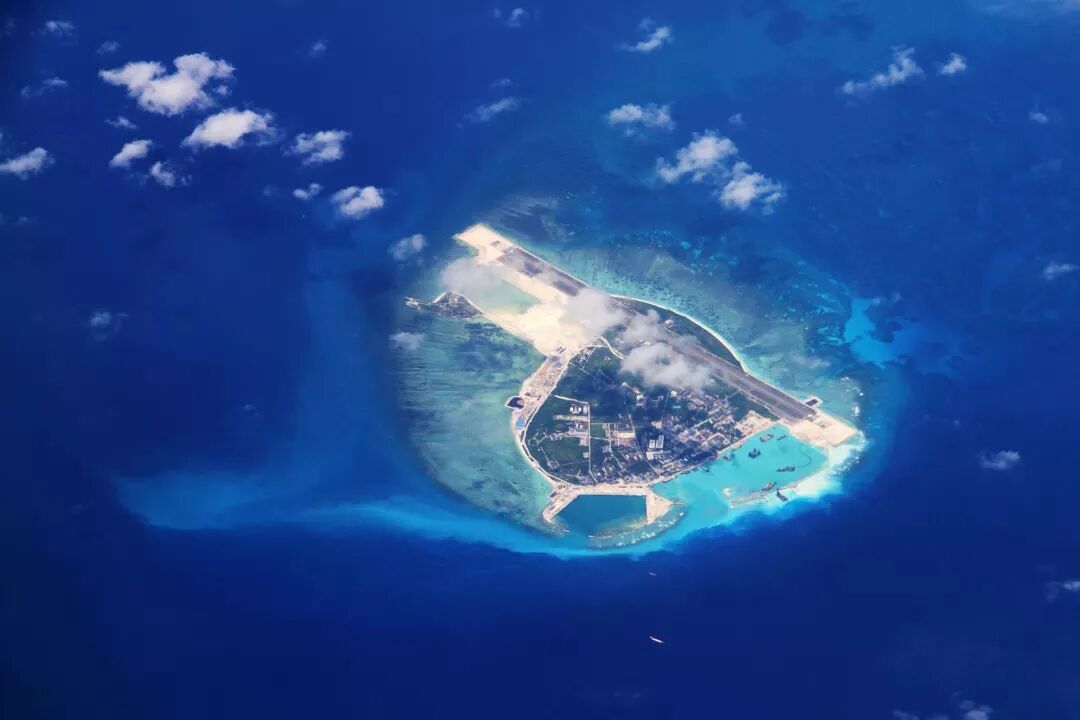 三沙市是我国最年轻的地级市,管辖着西沙、中沙、南沙群岛。图为西沙永兴岛,是整个南海诸岛中最大的岛屿,由白色珊瑚贝壳沙堆在礁石平台上形成。永兴岛上植被繁茂,海鸟麋集,一条飞机跑道伸向湛蓝的大海。