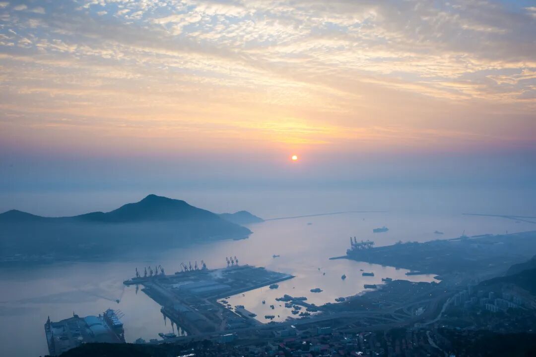 连云港,位于江苏省东北部,海州湾西岸,因背倚云台山、面向连岛而得名。图中的连岛,是江苏省最大的海岛,似海上仙山浮座于浪涛之上,与现代港口隔海相望。