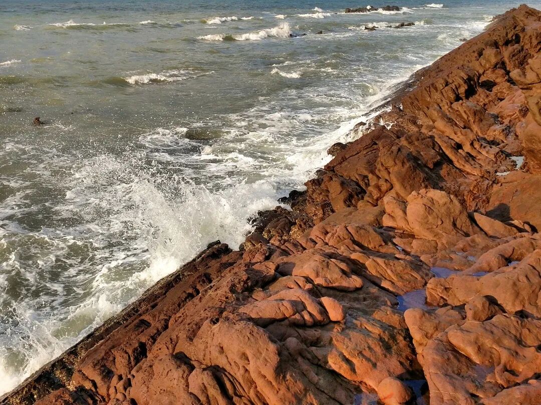 防城港西南与越南接壤,南临北部湾,既是边疆,又是海港。图为防城港怪石滩,是海浪常年锉削岩石而成的海蚀地貌,褐红色的石滩又被叫作海上赤壁,演绎着海枯石烂的图景。