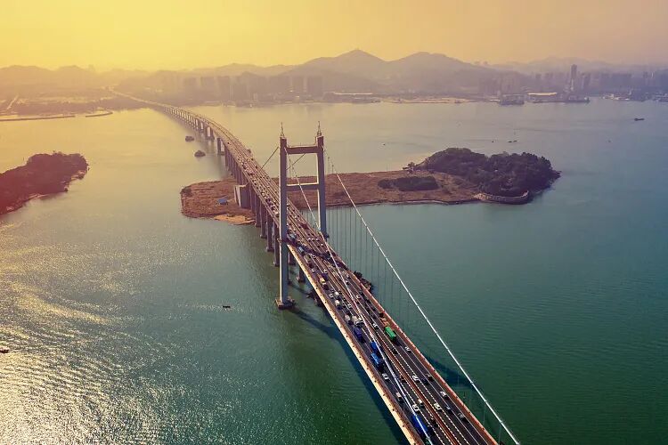 从珠海眺望海洋,2018年开通运营的港珠澳大桥,如同一条长龙卧于海上。它东接香港,西接珠海、澳门,全程55公里,是目前世界上最长的跨海大桥。