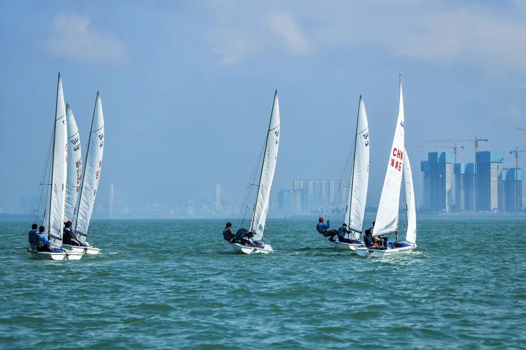 海口,别名椰城,地处海南岛北部,北濒琼州海峡。热带的气候,绝佳的水质,宜人的滨海风光,让海口成为开展水上运动的天堂。图为海口市国家帆船帆板基地。