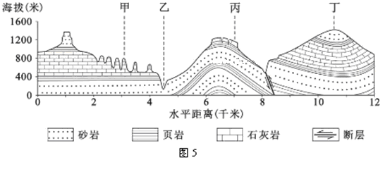 D.丁处是典型的背斜山