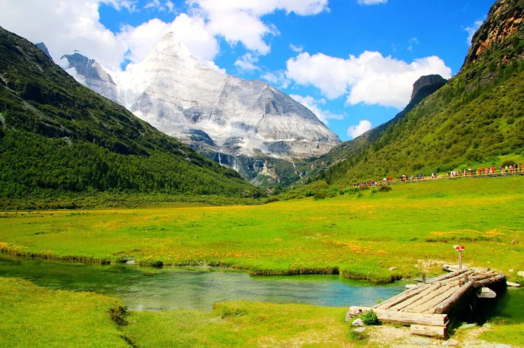 位于四川省甘孜藏族自治州南部稻城县日瓦乡境内,地处海拔2900米以上,与其相距不远,呈“品”字形排列的雪峰,属于横断山脉的三座神山,以仙乃日、央迈勇、夏纳多吉三座雪峰为核心区,南北向分布终年积雪不化。由于特殊的地理环境和自然气候,形成了独特的地貌和自然景观,是我国保存最完整的一处自然生态系统。