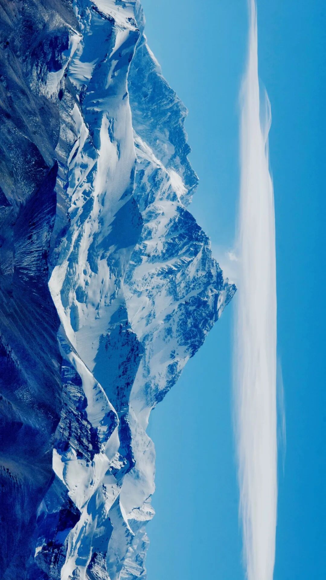 五月的珠峰,天气依旧很冷,但大多数晴空万里,见证旗云的壮观,那是珠峰最壮丽的景色。墨蓝的天幕做背景,无际的苍穹没有一丝云彩,朝霞映在珠峰顶三分之一以上地带,而珠峰在这样的画面中,唯独多了一条在峰顶拉出的细长白丝带。因为看着很像旗帜,一直以来都被称作“旗云”。