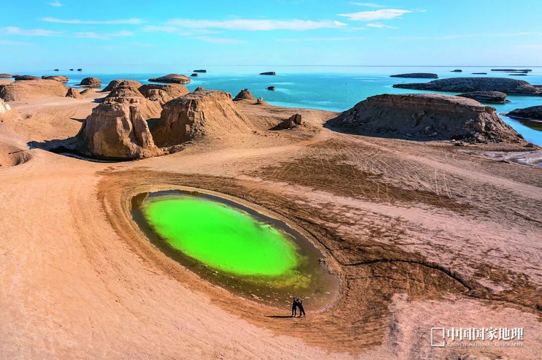 在低洼处,不经意间可以发现一些近似圆形的小水潭,它们的生命周期大都很短暂,因为气候干旱、地下水位下降等因素而迅速消失。“速生速死”的小水潭,如同这片奇特地貌孕育出的“眼睛”,可称之为“雅丹之眼”,成为柴达木盆地岁月沧桑的见证者。