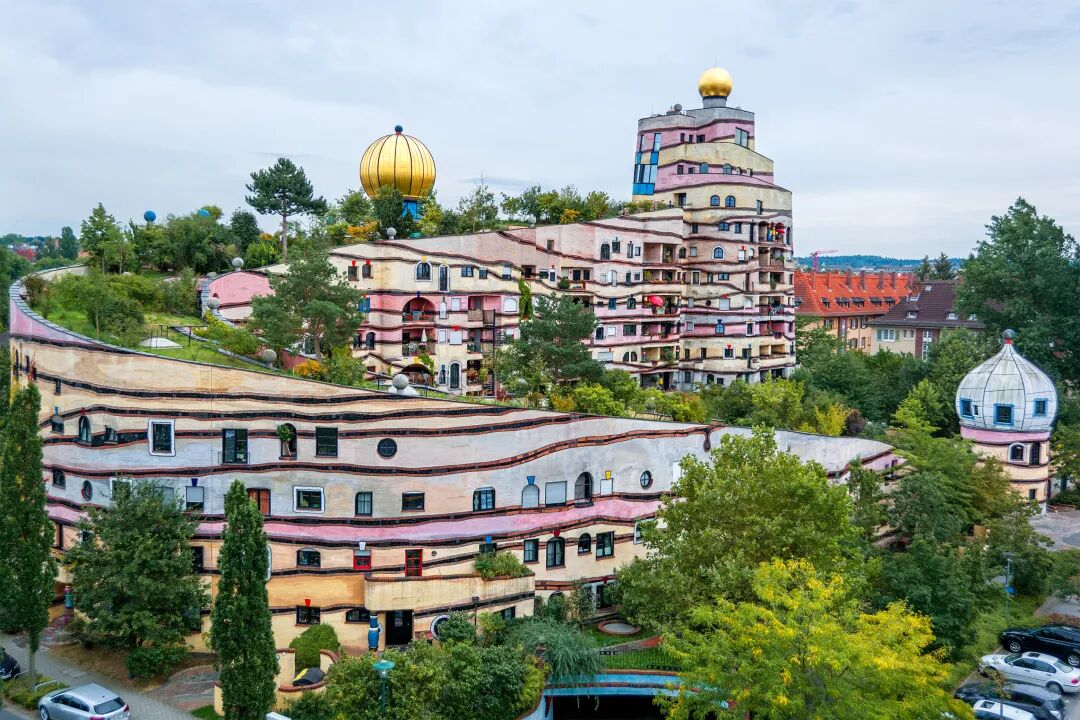 螺旋森林是一座住宅建筑群,建于20世纪90年代,2000年完工。这一建筑由奥地利建筑师佛登斯列·汉德瓦萨设计,建筑里面有105间公寓和一个餐厅。它最让人叹为观止的是不规则的造型、如漩涡的梦幻色彩和模仿不同岩石地层的线条设计。