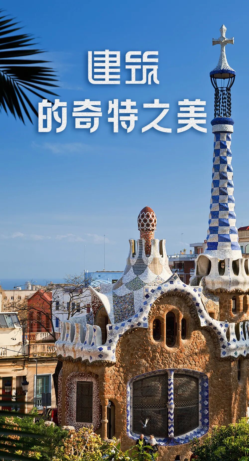 高迪认为:“直线属于人类,曲线属于上帝。”高迪极力在自己的设计当中追求自然,在他的作品中几乎找不到直线,大多采用充满生命力的曲线与有机型态的物件来构成一栋建筑。在奎尔公园,不管是石阶、石柱,还是弯曲的石椅,都由瓷砖拼贴而成,充满了各式的马赛克,色彩明丽斑斓,让人仿佛来到童话世界。