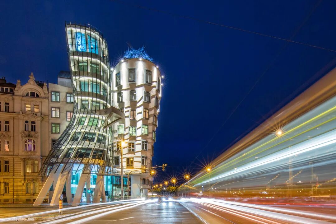 跳舞的房子建于1992年至1995年,由建筑师Frank Gehry和Vlado Milunić共同设计。跳舞的房子又名琴吉和弗雷德的房子,取自一对著名的舞伴琴吉·罗杰斯和弗雷德·阿斯泰尔。这座建筑看上去就像一对正在跳舞的情侣,外形的弧线仿佛伴随音乐起舞飘扬的裙裾。跳舞的房子脱颖于新巴洛克、新哥德与新艺术运动的建筑之间,在传统高层建筑中十分突出。