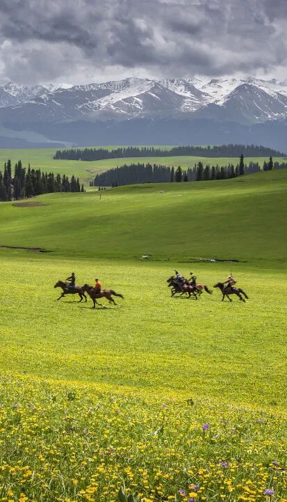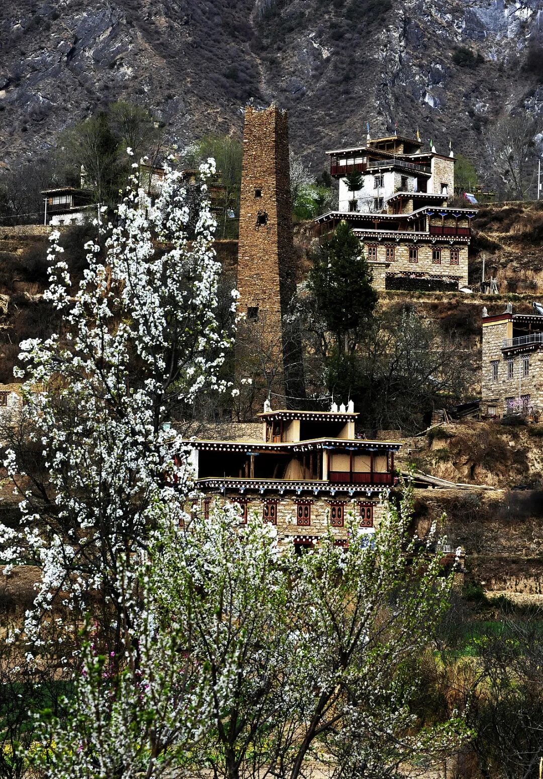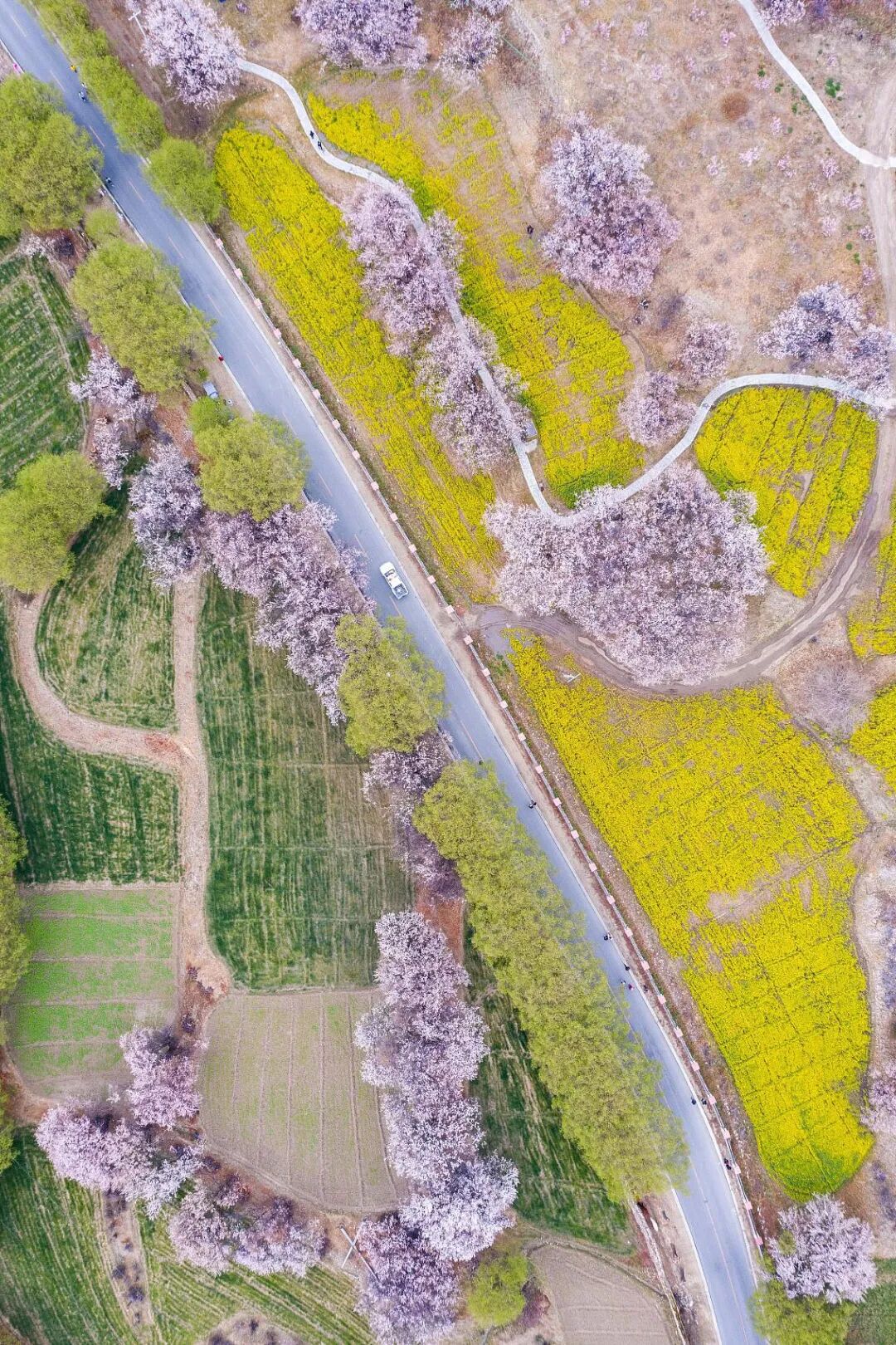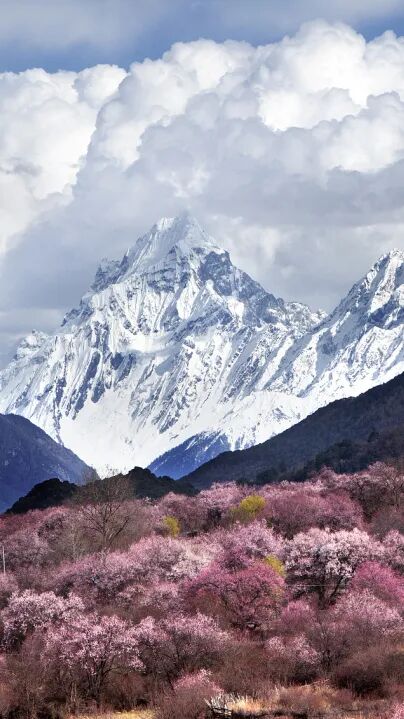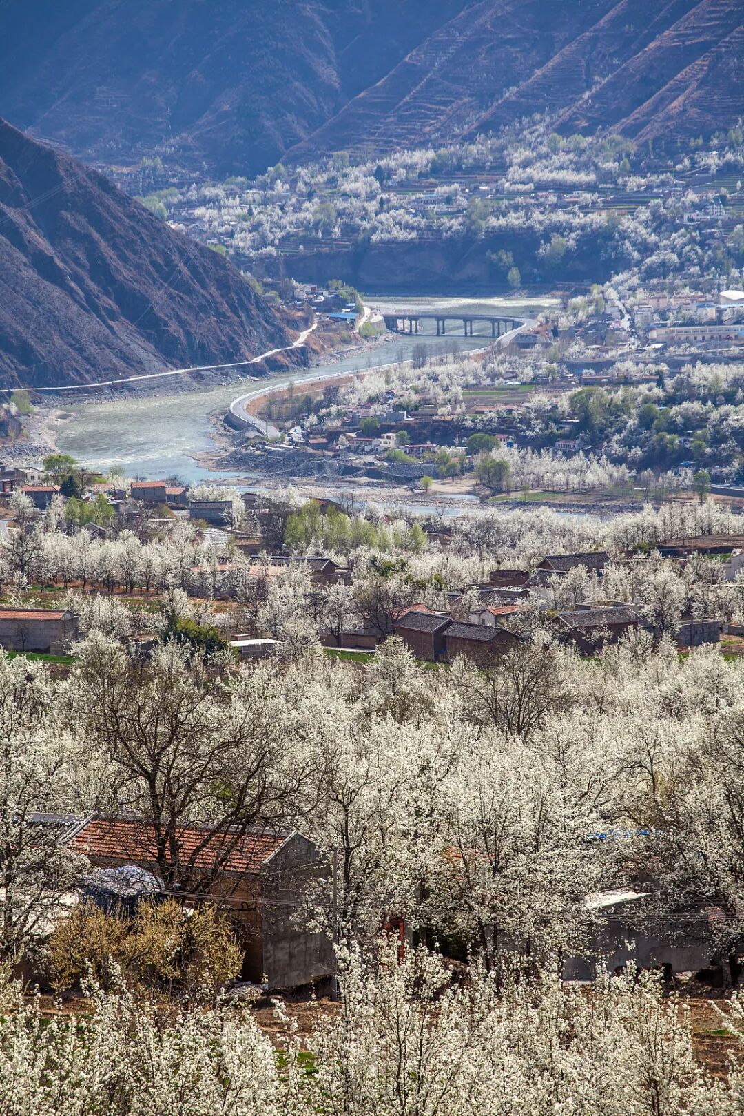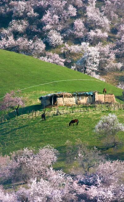 这里的杏花怒放在巍峨雪山下、辽阔草甸上