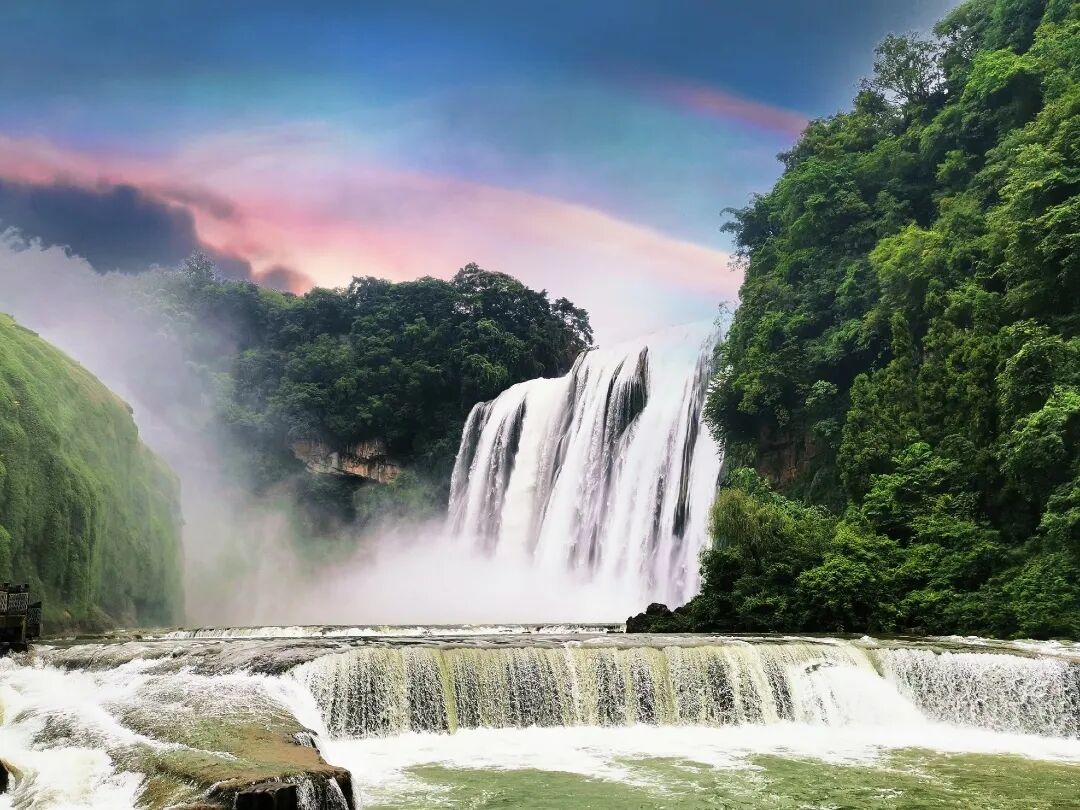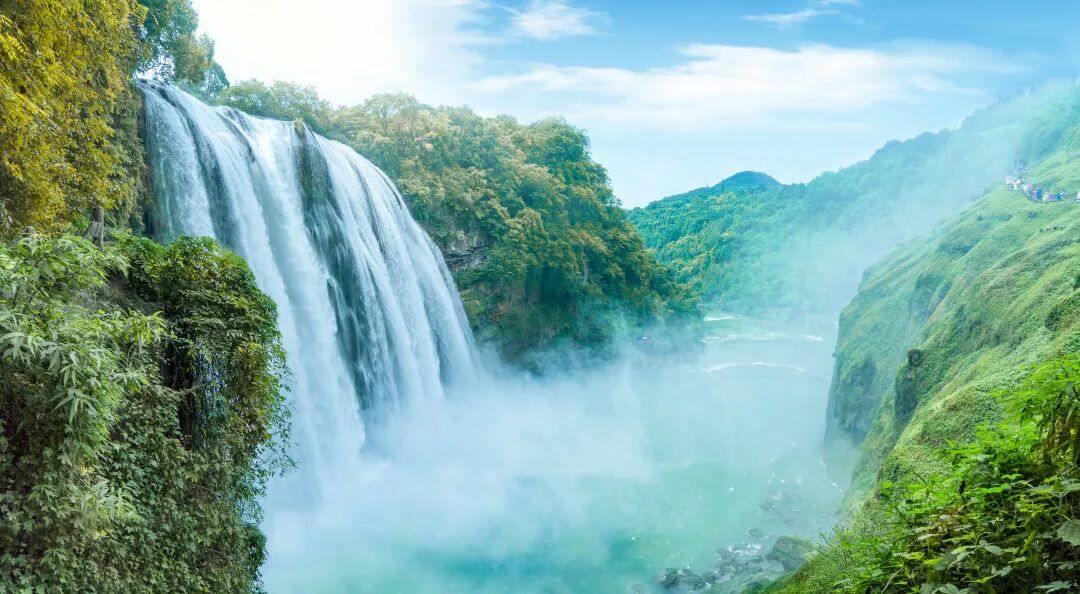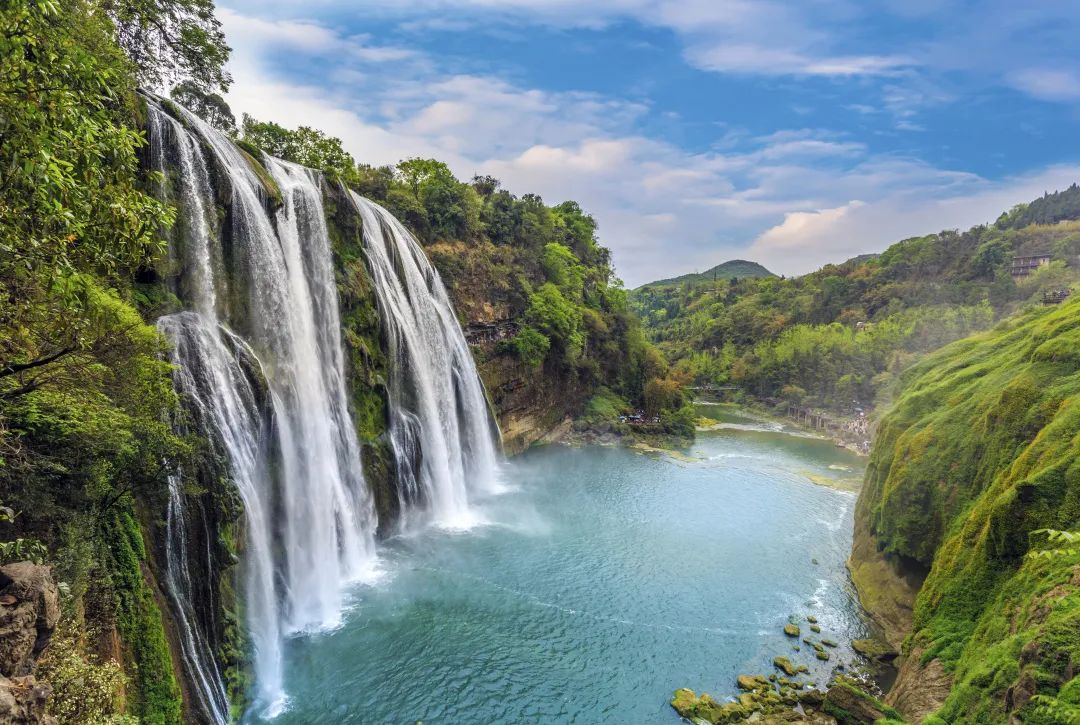位于贵州省镇宁、关岭两县境内北盘江支流、打帮河上游的白水河和陵河上,是中国最大的天然瀑布,也是世界上最壮观的大瀑布之一。河水从断崖顶端凌空飞流而下,倾入崖下的犀牛潭中,发出震天巨响,十里之外即闻其声,如千人击鼓,万马奔腾,使游人惊心动魄。