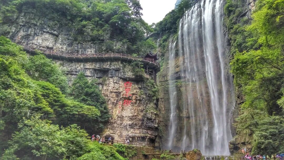 位于湖北省宜昌市夷陵区黄花乡,这里是世界上少有的集峡谷、溶洞、山水、化石文化为一体的三峡晓峰国家地质公园,景区内植被四季常青,森林覆盖率达90%。其中最壮观的是高102米、宽80米的三峡大瀑布,是全国独一无二的可零距离“穿越”的大瀑布,让人充分感受“集体湿身”的欢快和刺激,令人陶醉其间,流连忘返。