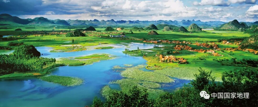 这里属于滇东南岩溶区,蜿蜒变幻的湖泊溪水中,点缀着独特喀斯特峰丛,既有桂林山水的灵秀,又有江南水乡的古朴神韵,还有杭州西湖波光潋滟的明丽。