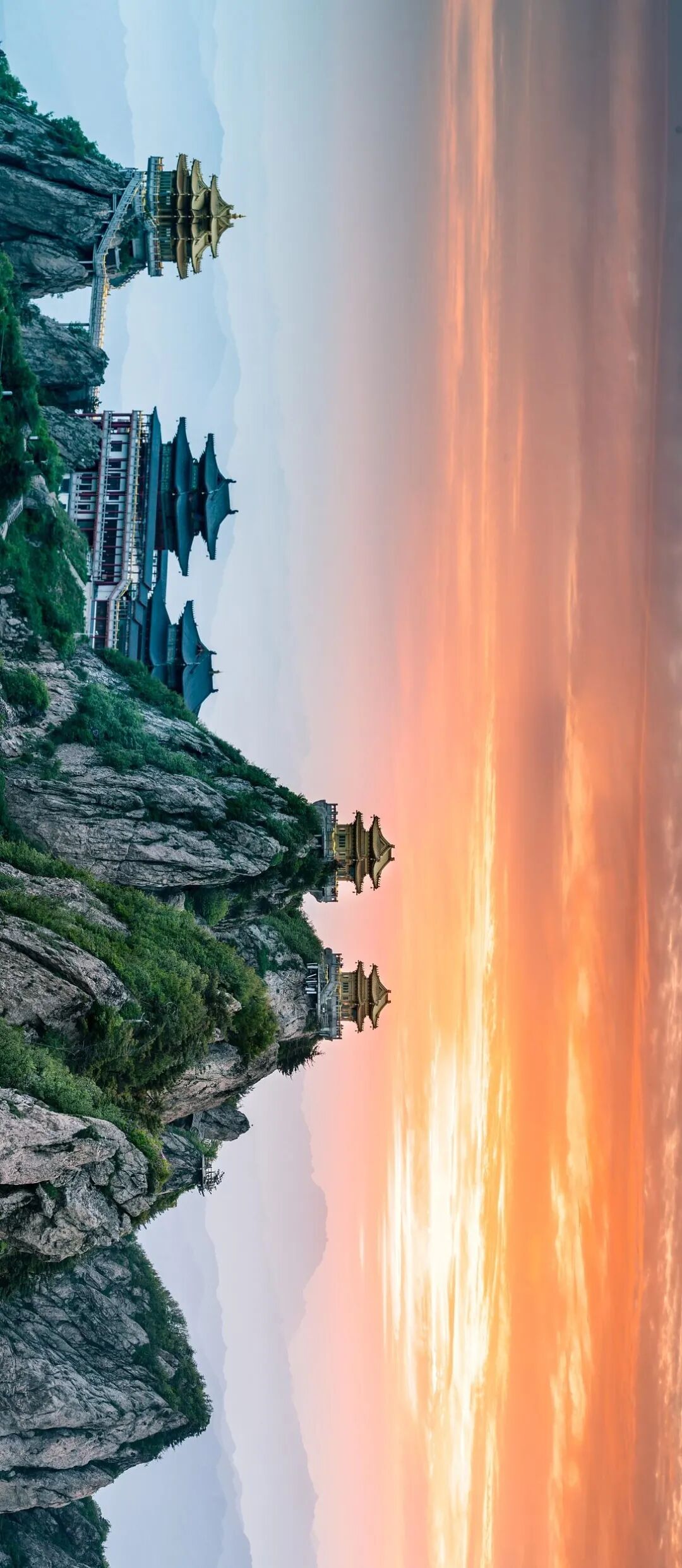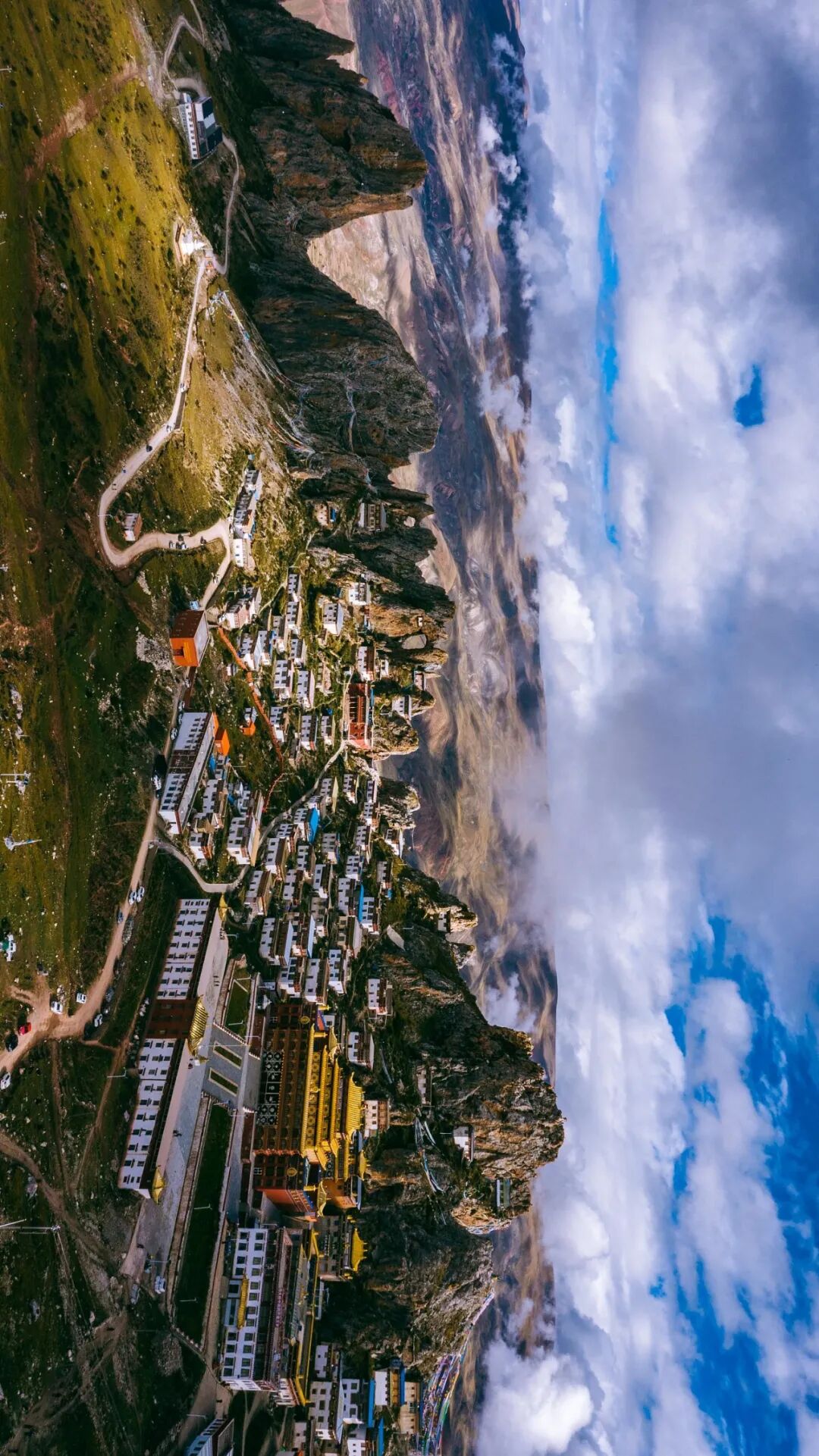 这些建筑都像是挂在悬崖峭壁上一样