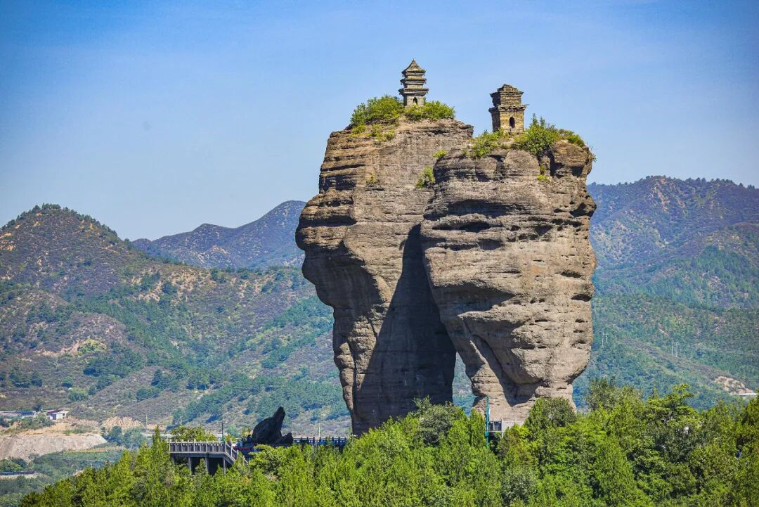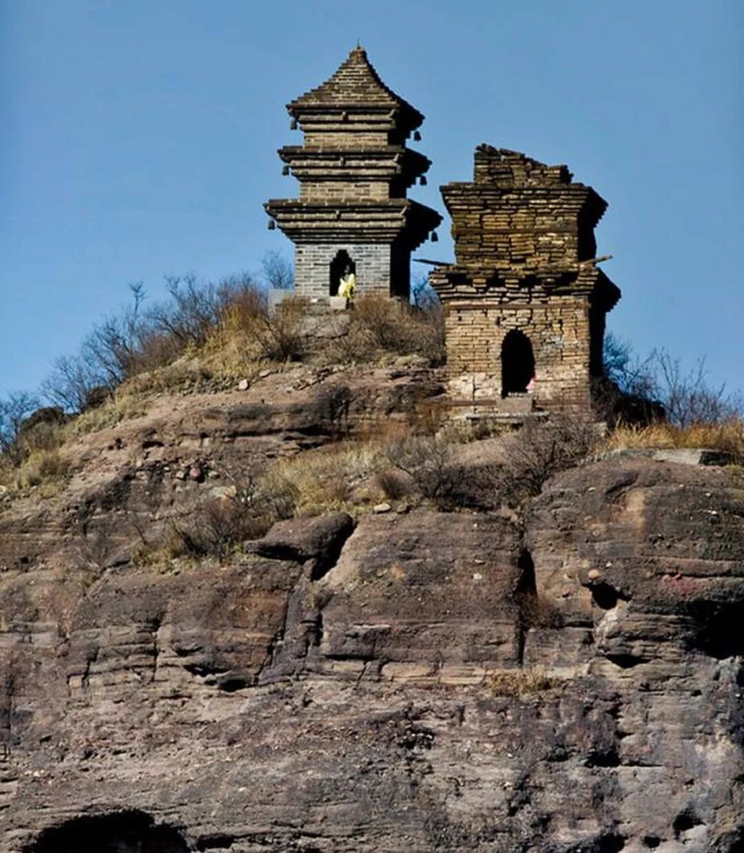 两峰之上各有一座砖塔