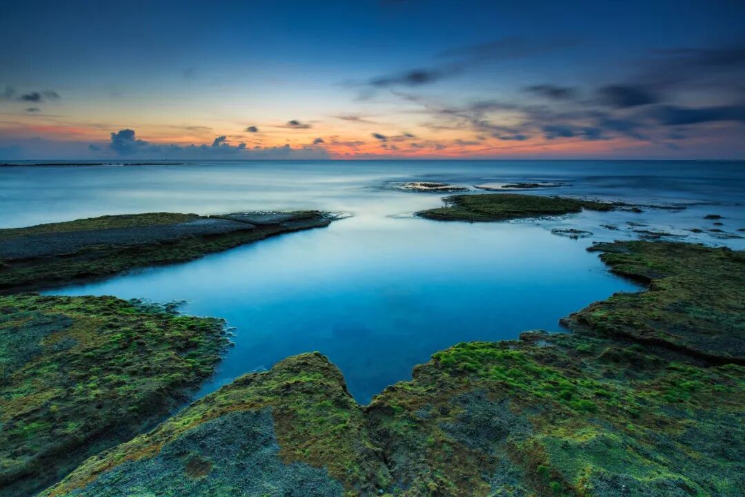三面环山,天台山、大盘山、括苍山和雁荡山将其合围,仅有一面沿海。进入台州湾,一个似喇叭口一样的海湾,拥有着最动人心魄的海岸景观。日出时,霞光无限,漫天光影使人迷;夕阳落下,鸥鸟纷飞,一处“落霞与孤鹜齐飞,秋水共长天一色”的绝境。