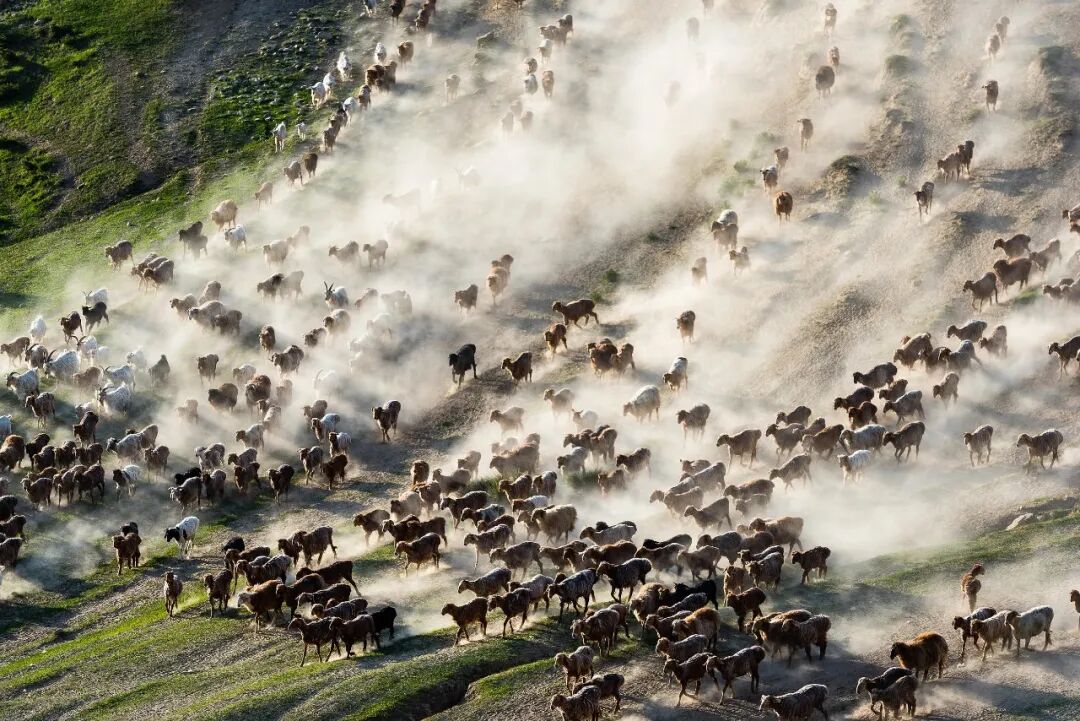 在我国新疆天山、阿尔泰山地区有许多“山地牧场”。它们随着海拔的变化,从低处的荒漠草原到高处的高山草地,类型不一而足,草种也有明显差异。牧人们不浪费每一处资源,根据气候、地形和牧草长势,在牧场之间按季节迁移,形成了独具特色的“转场”。