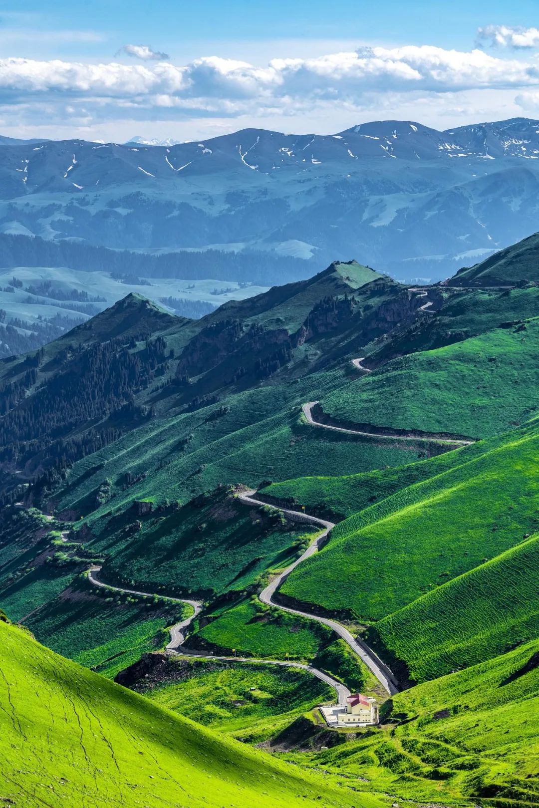 喀拉峻草原是公认的“立体草原”,海拔在1820~3910之间,由于高差的不同,形成了层次分明,错落有致的独特景致,就像是把一幅绝美的山水风景画卷摆放在面前。一望无垠的草原犹如一个巨大的绿色地毯,一直铺到了冰清玉洁的雪山脚下,高低起伏,丰富的色彩,令人不知不觉就沉醉于美景之中。