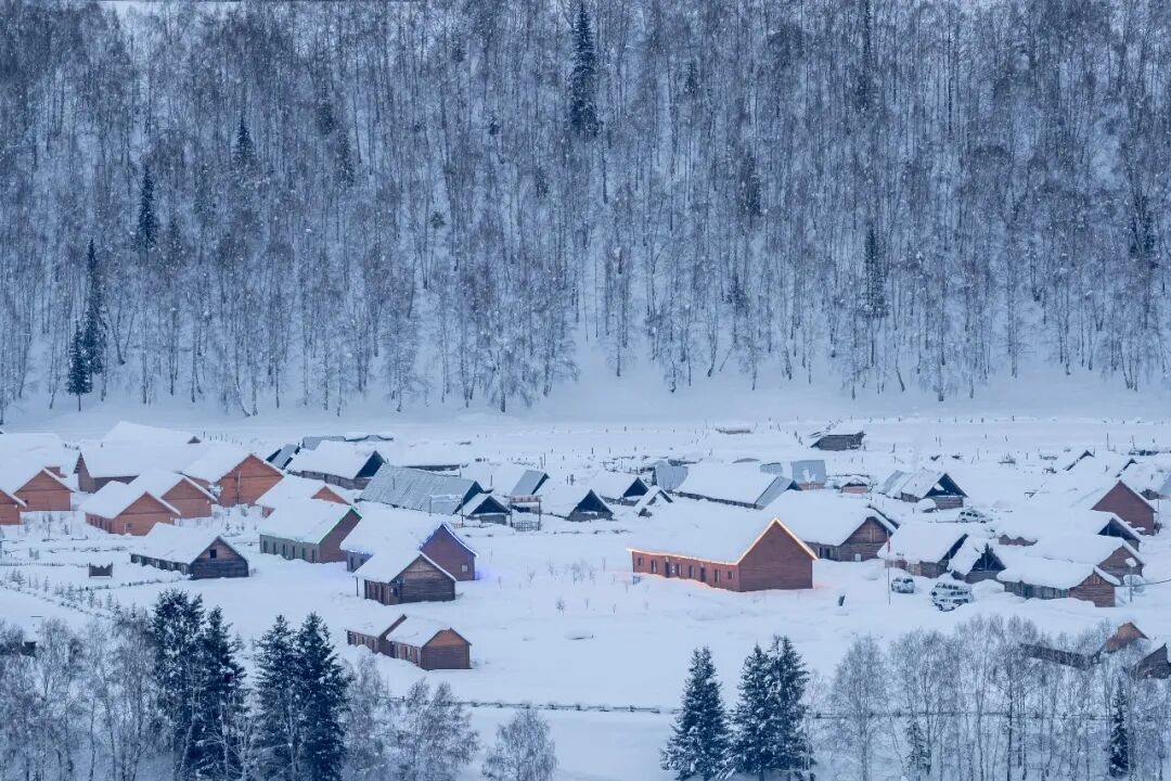 冬之疆,白雪覆盖村落,炊烟袅袅升起,雪花沉寂了游人的喧嚣,而生活从未停止。